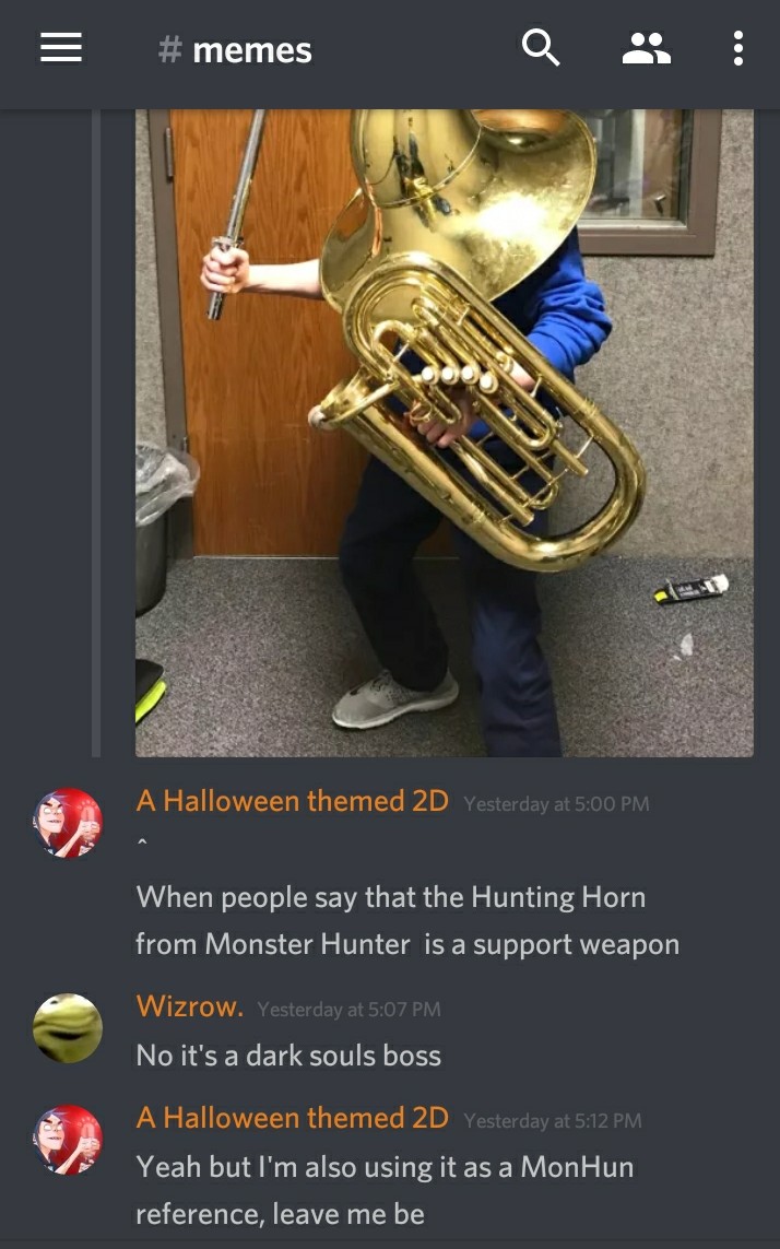 Hunting horn monster hunter world meme. Monster hunter world bazelreid rookslayer hunting horn weapon guide. Please see weapon mechanics for details on the basics of your hunter tools. Bazel s hunting horn shines best in peak performance builds where you can keep you and your teammates health in top shape. And the bone tree just doesn t provide as much damage as the glavenus one. Effect 2 is achieved when playing the same song while effect 1 is in effect. Alatreon is a large monster in monster hunter world mhw 煌黒龍 アルバトリオン in japanese. That being said a hunting horn is a weapon like any other.