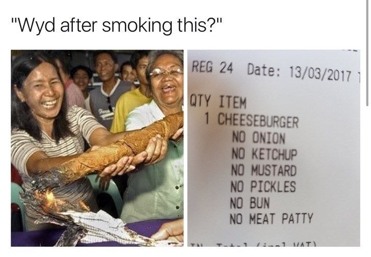 What would you do after smoking something like this. A way of describing cultural information being shared. Trump tried to accuse the 75 year old man who was shoved by buffalo police to the ground of being an antifa provocateur. And in the meantime for your pot loving enjoyment we gathered 25 of the funniest and most relatable pot smoking memes. While it s not brand new the wyd after smoking this meme has hit its peak on thursday thanks to the unofficial marijuana holiday 420. This video went viral around the world been shared 46k times on facebook made by siah douglas dinero aka reece. This meme answers the all important question.